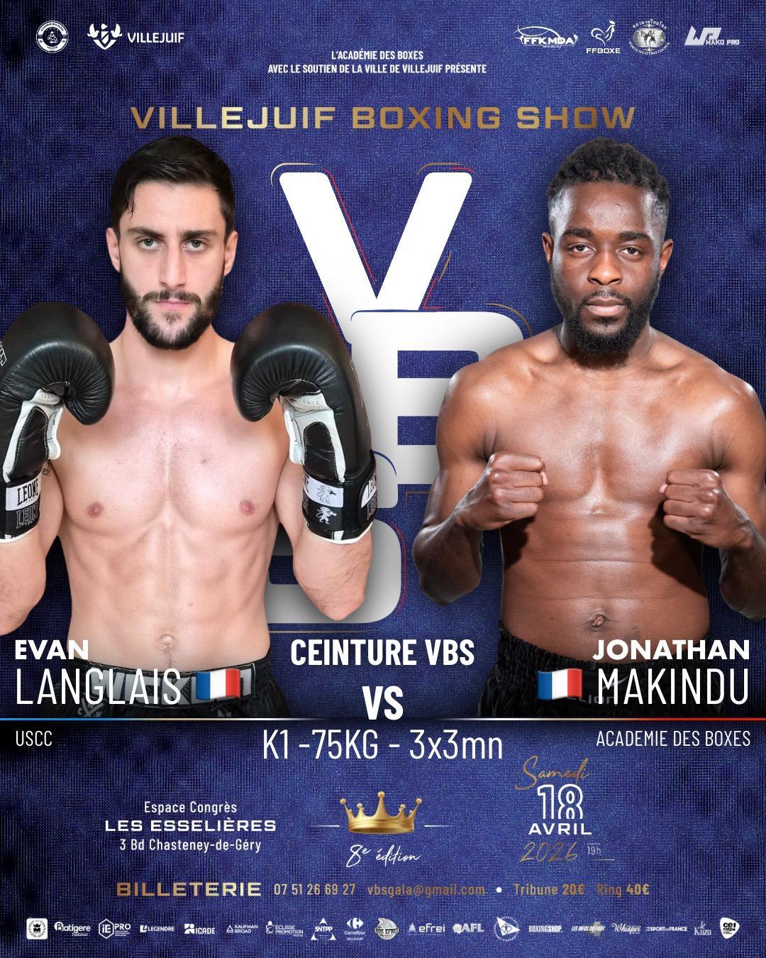 Jonathan Makindu (Académie des boxes de Villejuif) face à Evan Langlais (USCC), ceinture VBS en jeu le 18 avril prochain : c'est un fight à ne pas manquer. Les deux font parler d'eux depuis plusieurs mois et leur rencontre devenait presque inévitable. Makindu est à la maison, reste sur une série incroyable avec des victoires face à des boxeurs comme Dawson Delys ou Constant Padabadi. Il a pris le titre de champion de France K-1 en 2025 et il a clairement franchi un palier dans sa boxe.