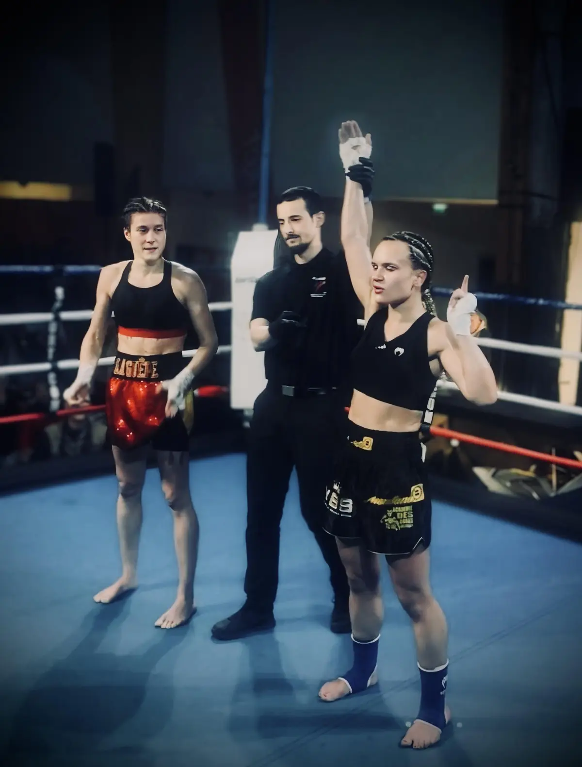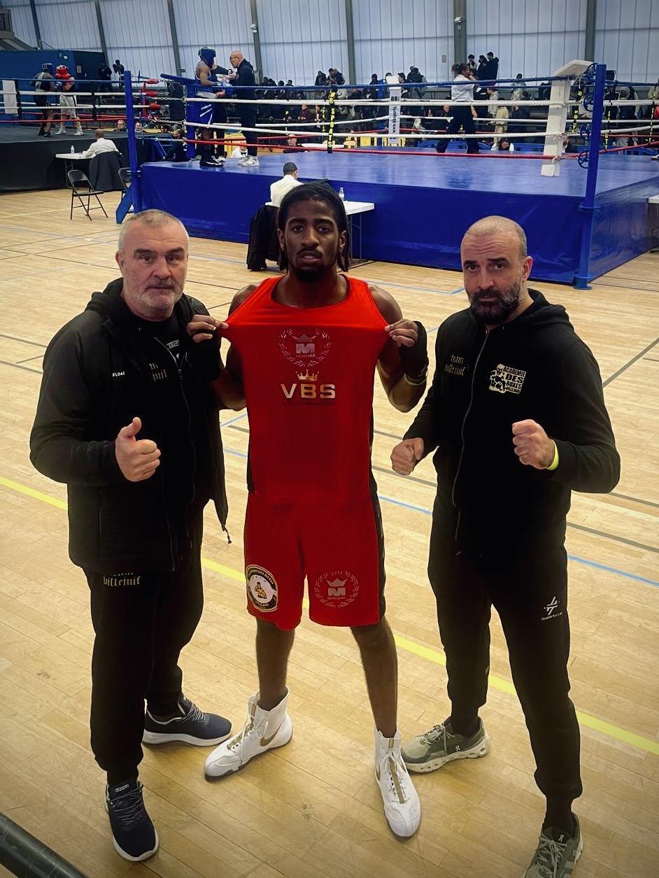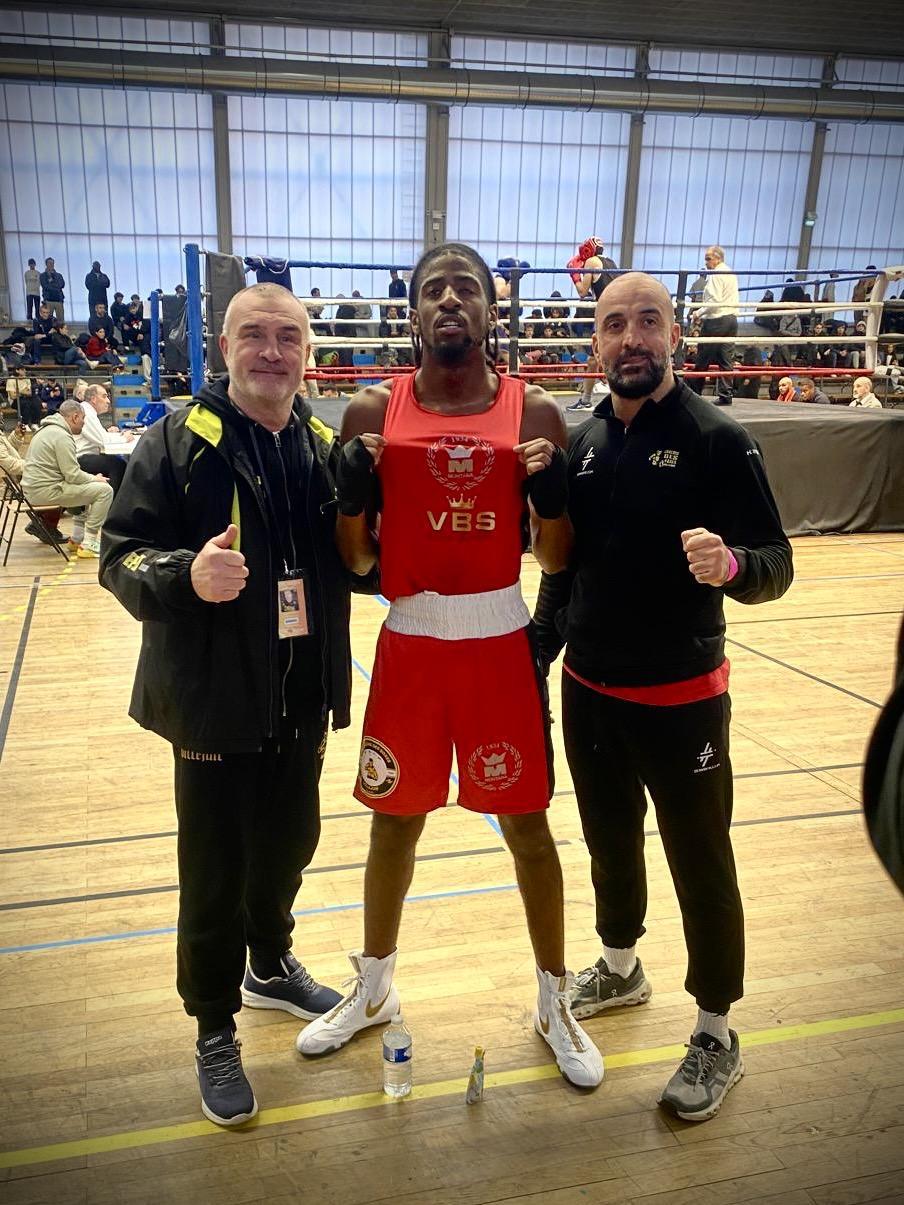 Le bras levé de la victoire pour Brandon hier soir lors de la rencontre France-Italie au Palais Omnisports de Thiais. Face à un nouveau défi de taille (son 1er combat en 3x3 min et sa 1ère sortie internationale), il a livré une prestation solide du début à la fin pour convaincre les 3 juges.