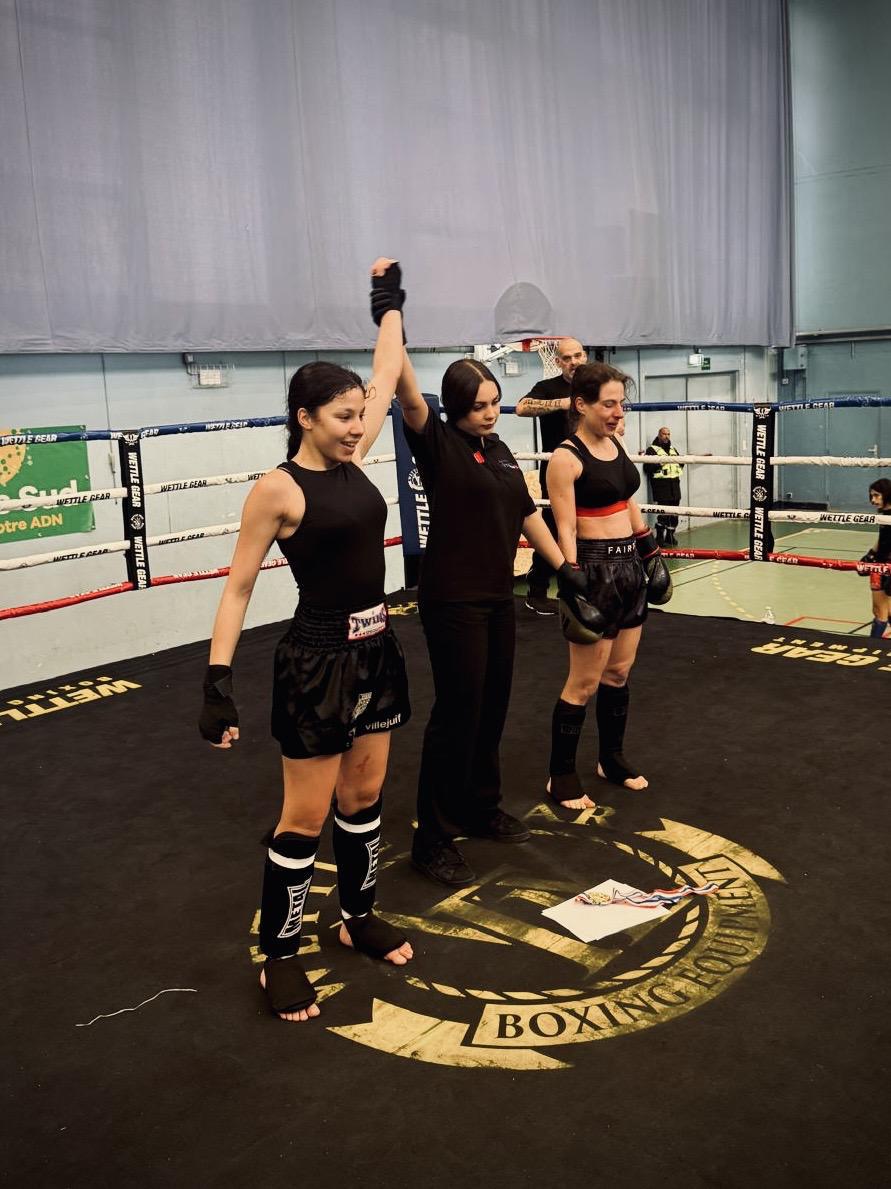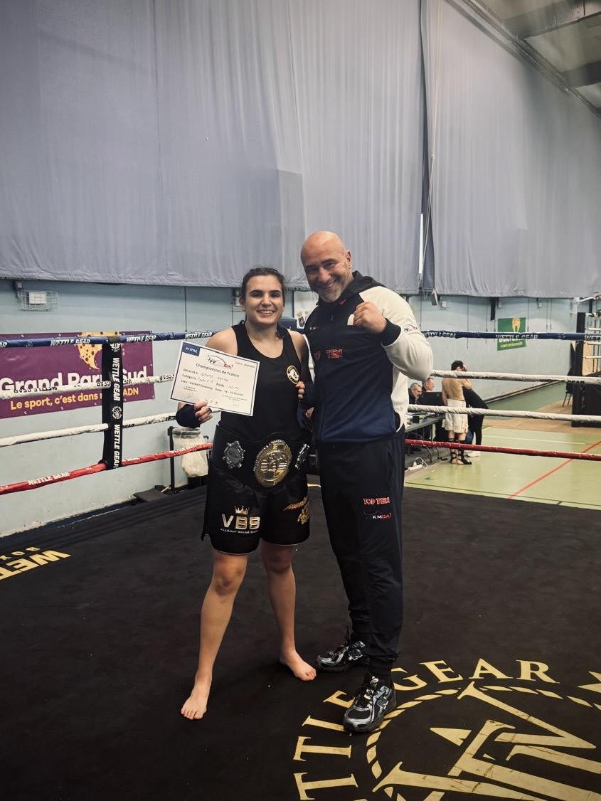 Un immense bravo à Amel (-48kg Classe B) qui décroche la médaille d'or et à Fatma (-65kg Classe A) qui décroche la ceinture de Championne de France classe A ! Après avoir manqué le titre de peu en Low Kick, elles n'ont rien lâché, sont retournées au travail et récoltent aujourd'hui les fruits de leur persévérance.